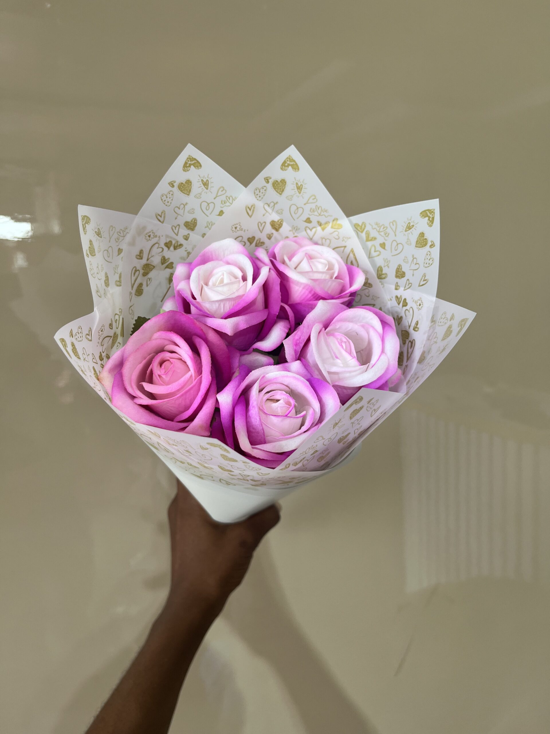 5 Two-tone Deep Pink Faux Roses Bouquet