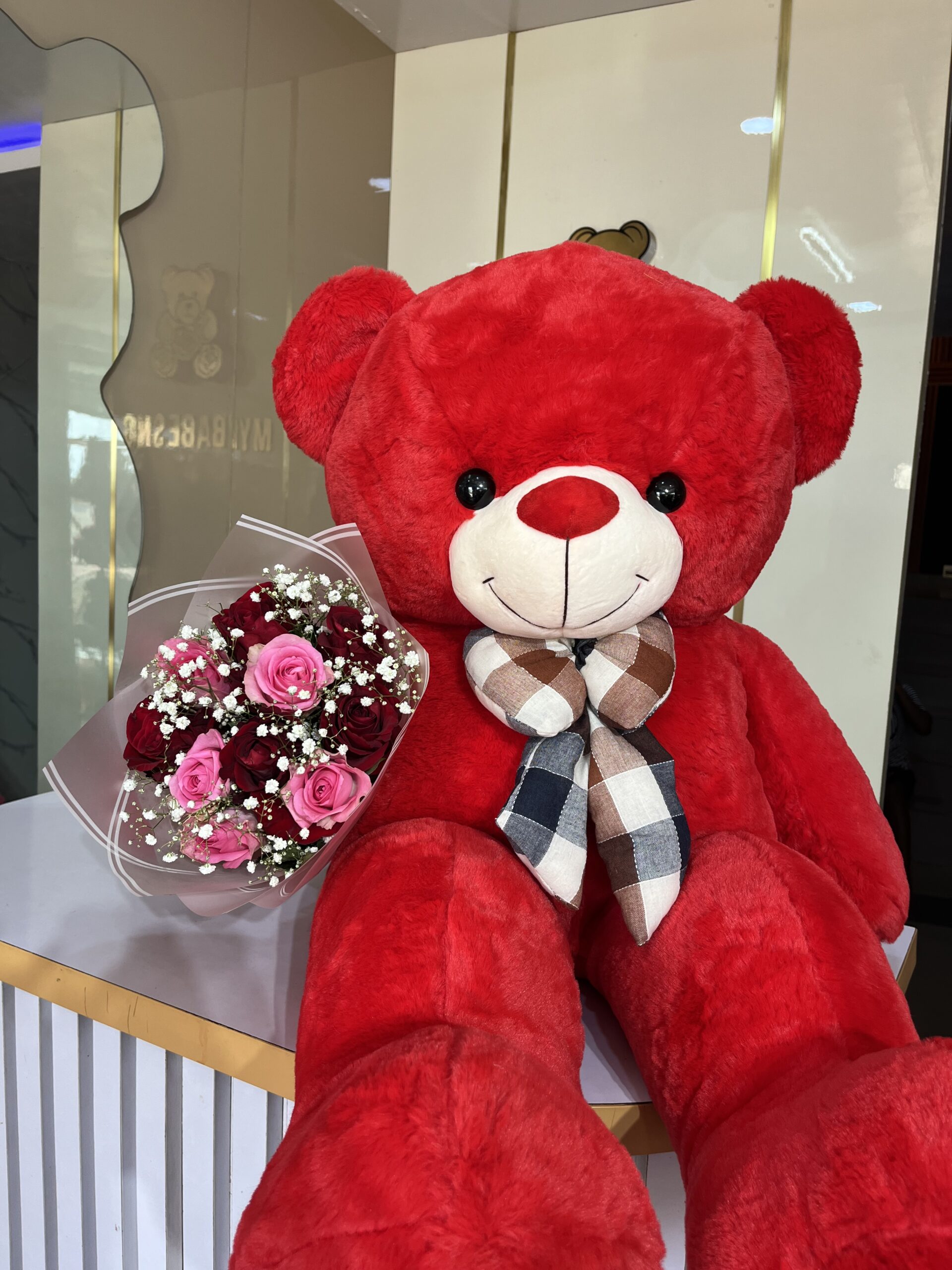 VAL 3: 100CM TEDDY WITH 10 FRESH ROSES quantity
